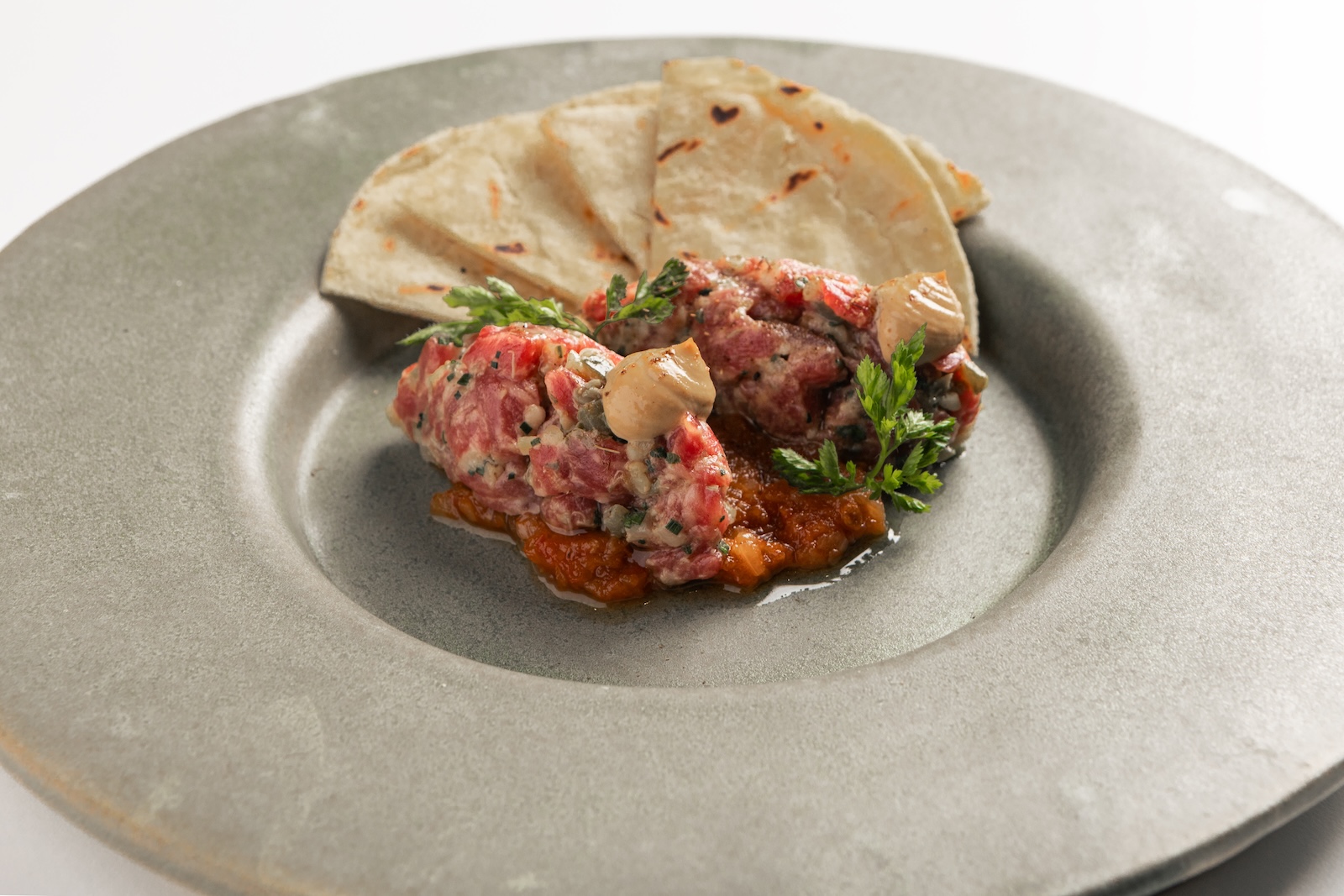 Η κουζίνα του εστιατορίου αντλεί έμπνευση από την ελληνική γαστρονομική παράδοση στο σύνολό της, αξιοποιώντας επιλεγμένα εποχικά προϊόντα και ελληνικές πρώτες ύλες. Το μενού ανανεώνεται σε τακτική βάση, ακολουθώντας τη φυσική διαθεσιμότητα των υλικών και τις σύγχρονες μαγειρικές πρακτικές, με στόχο τη δημιουργία πιάτων με καθαρό χαρακτήρα και διακριτική πολυπλοκότητα.